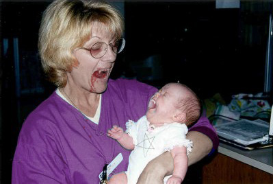 Lucy was desperate for grandchildren, and after shuffling through two lonely centuries with an empty nest and no prospects coming from her own thirteen children, Lucy decided to take matters into her own hands. Late one Sunday night, after the hospital closed, Lucy slipped out of the shadows and into the nursery - taking care to tenderly bite the most innocent looking newborn she could find. After an hour of nervously gnawing her nails (a delicate dance for a vampire), Lucy heard the guttural coo that could only come from a newly turned vampiric infant. Lucy shed a black tear of joy as she realized that the walls of her castle would once again echo with the yelping bloodlust of her very own baby girl.
